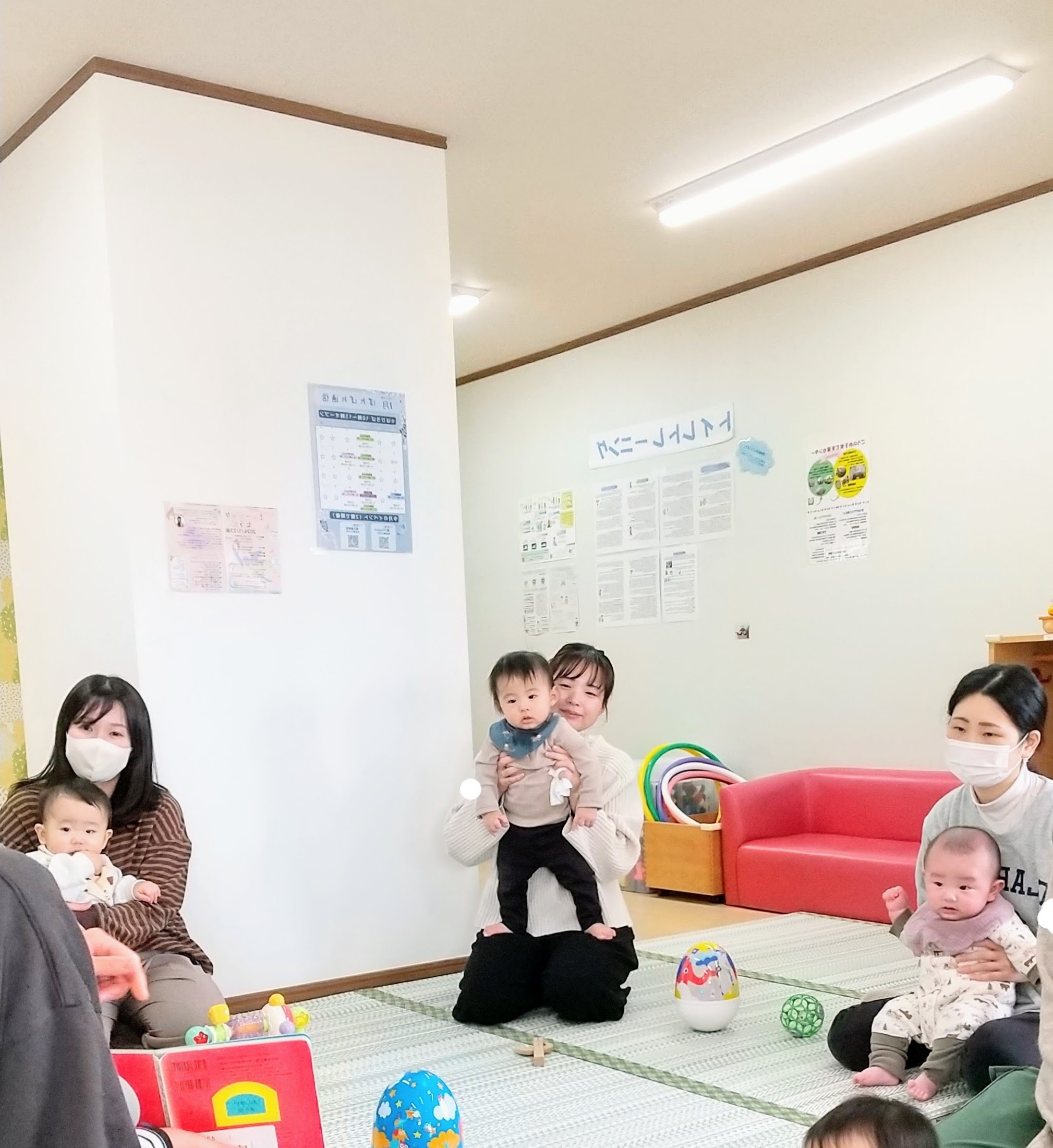 絵本が始まるとみんな興味を持ちじーっと見てくれ、終わってからも厚みのある絵本を集めみんなで絵本をめくったりママに読んでもらったりと読書タイムになりました🍀