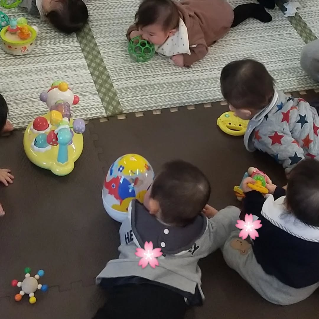 今日は0歳児のひろば、かめちゃんの日でした。ママのそばで安心して過ごす子どもたち、とても穏やかな時間でした。